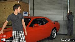 Inked teen girl sucks monster cock in garage then fucks publicly