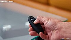 In this scene, the housewife gives a slutty handjob and dick rub to her husband, leading to a cum shot.