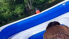 Outdoor blowjob with big tits and cum shot