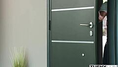 Stepdaughter fingered and fucked by stepdad with shaved tight pussy in erotic high definition.