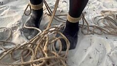 Beautiful Lari Bound In Shibari At Sunset