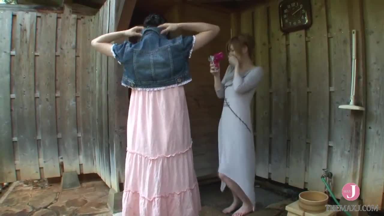 Azusa Itagaki and Rabu Saotome explore hot springs in swimsuits, showcasing big breasts and fetish elements.
