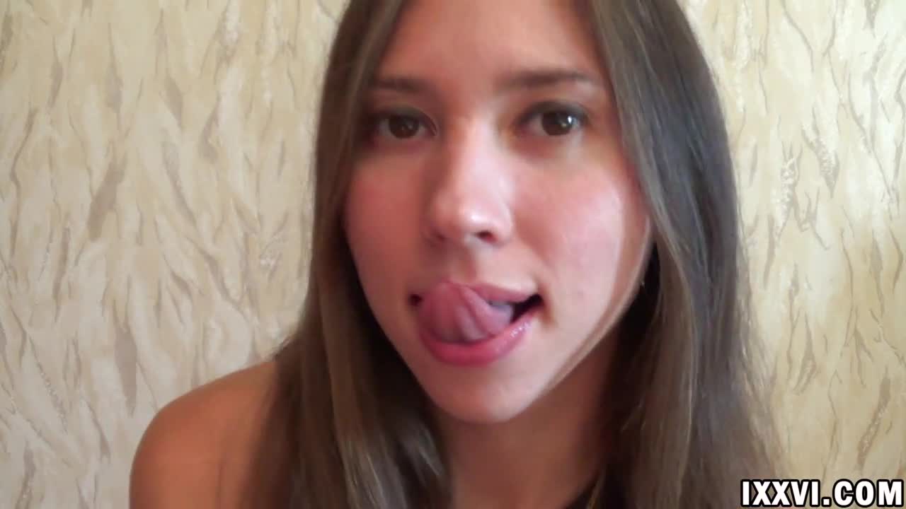 Petite 18+ Brunette Submissive Gags on Cucumber in Hot Taboo Play