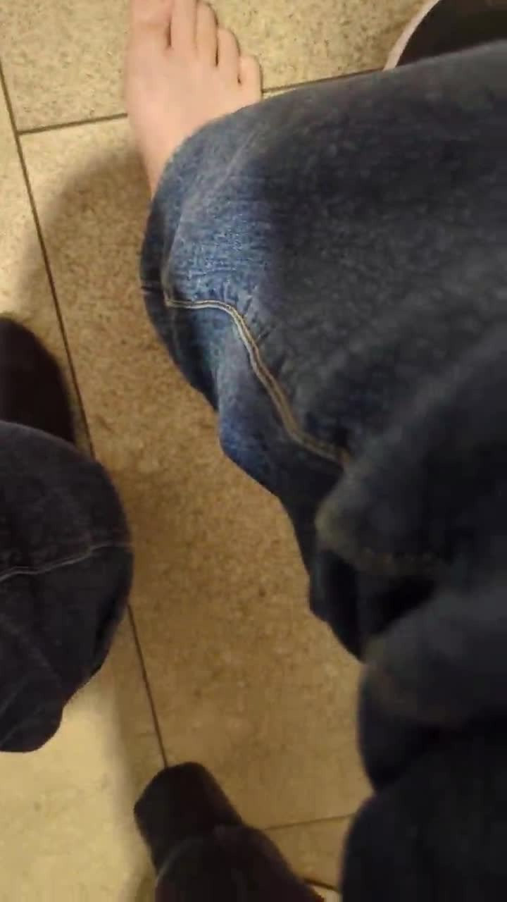 Getting undressed and relaxing in public restroom