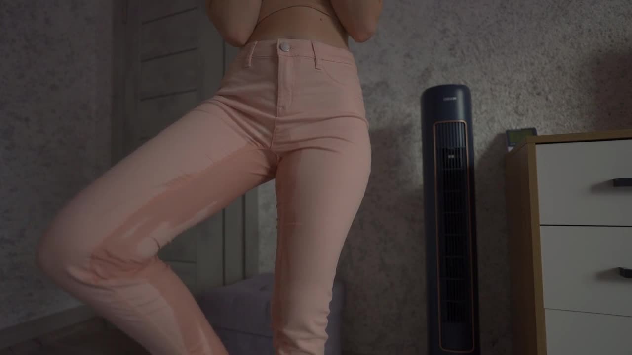 Teen pisses desperately in jeans and jacket
