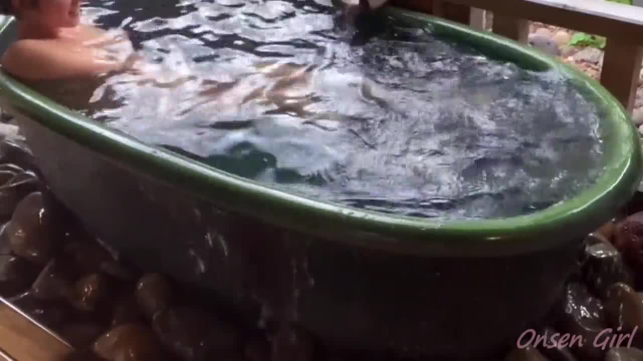 japanese hikaru kirishima savors steamy oral at hot springs.