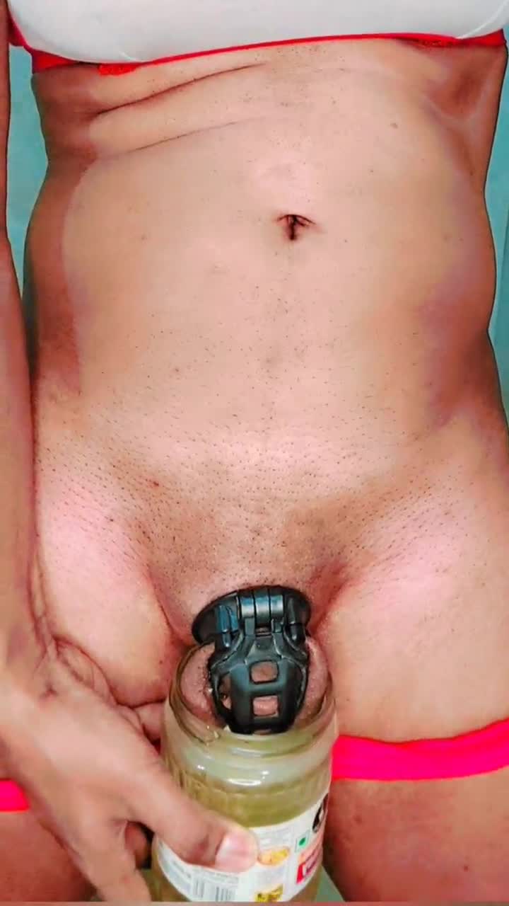 Detailed small cock ebony shemale strips and teases at home with dildo play.