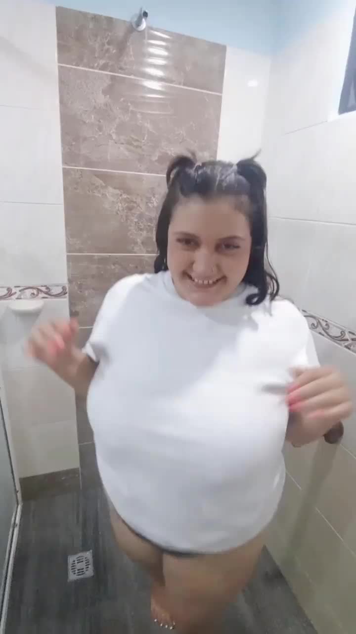 Beautiful brunette milf masturbates wet pussy in bathroom